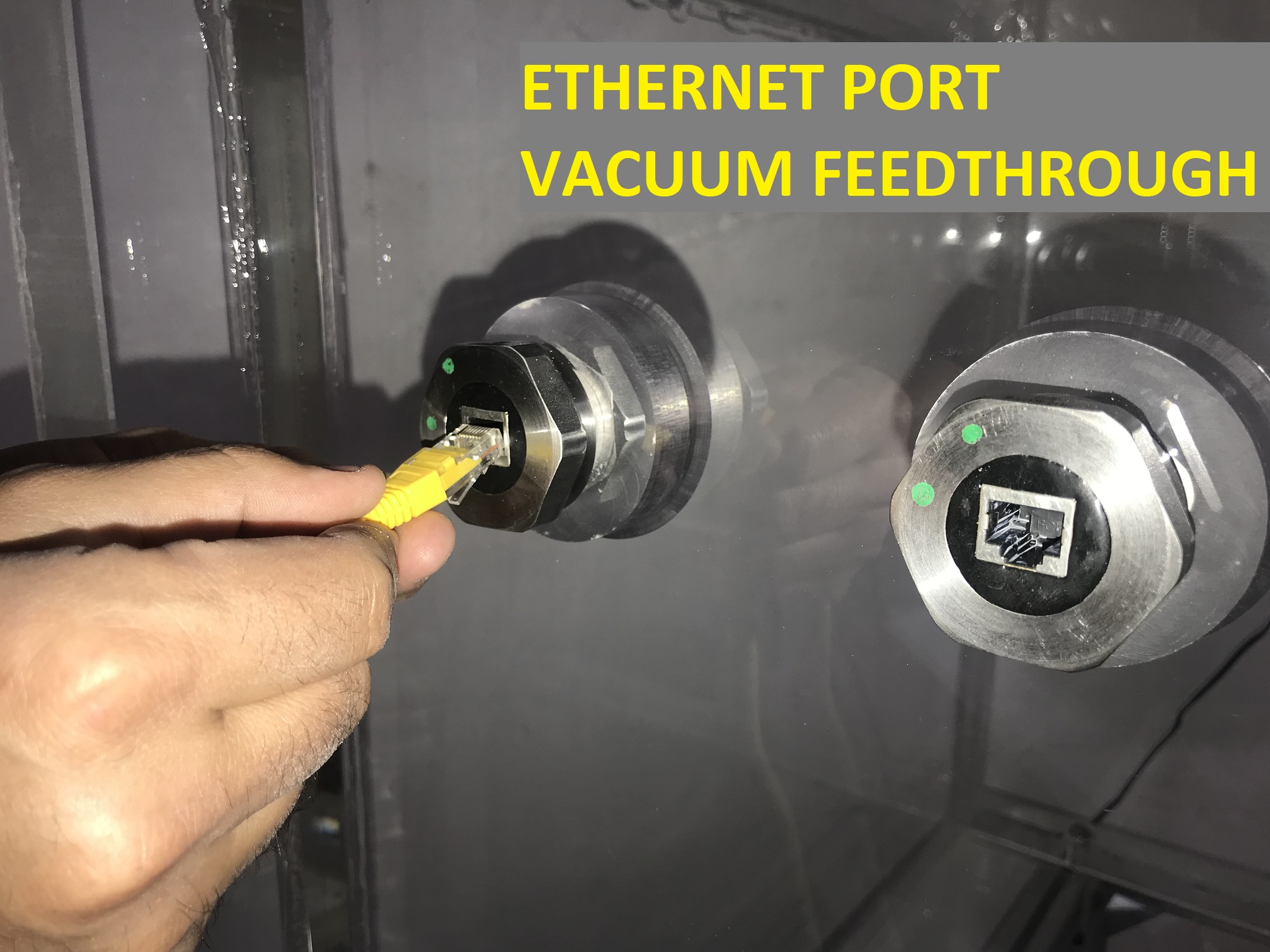 Yes, you can install an ethernet port onto the wall of your vacuum chamber. Space permitting, you will be able to install as many ethernet port as you require. The Ethernet Ports we provide with our vacuum chambers are designed to be operated inside a vacuum environment without leakage or compromise.